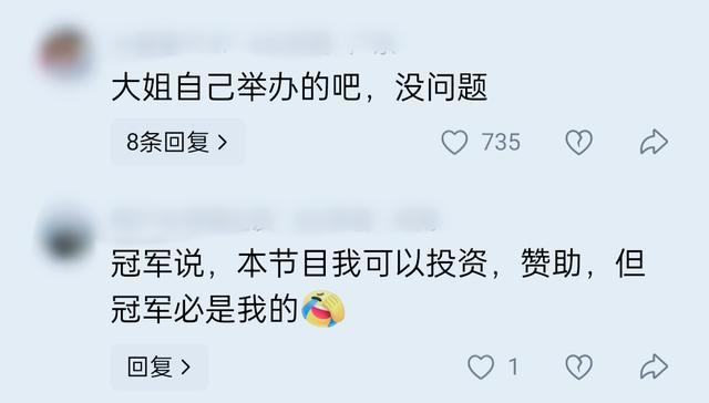 自己出钱赞助,要求只有一个,冠军必须是我。