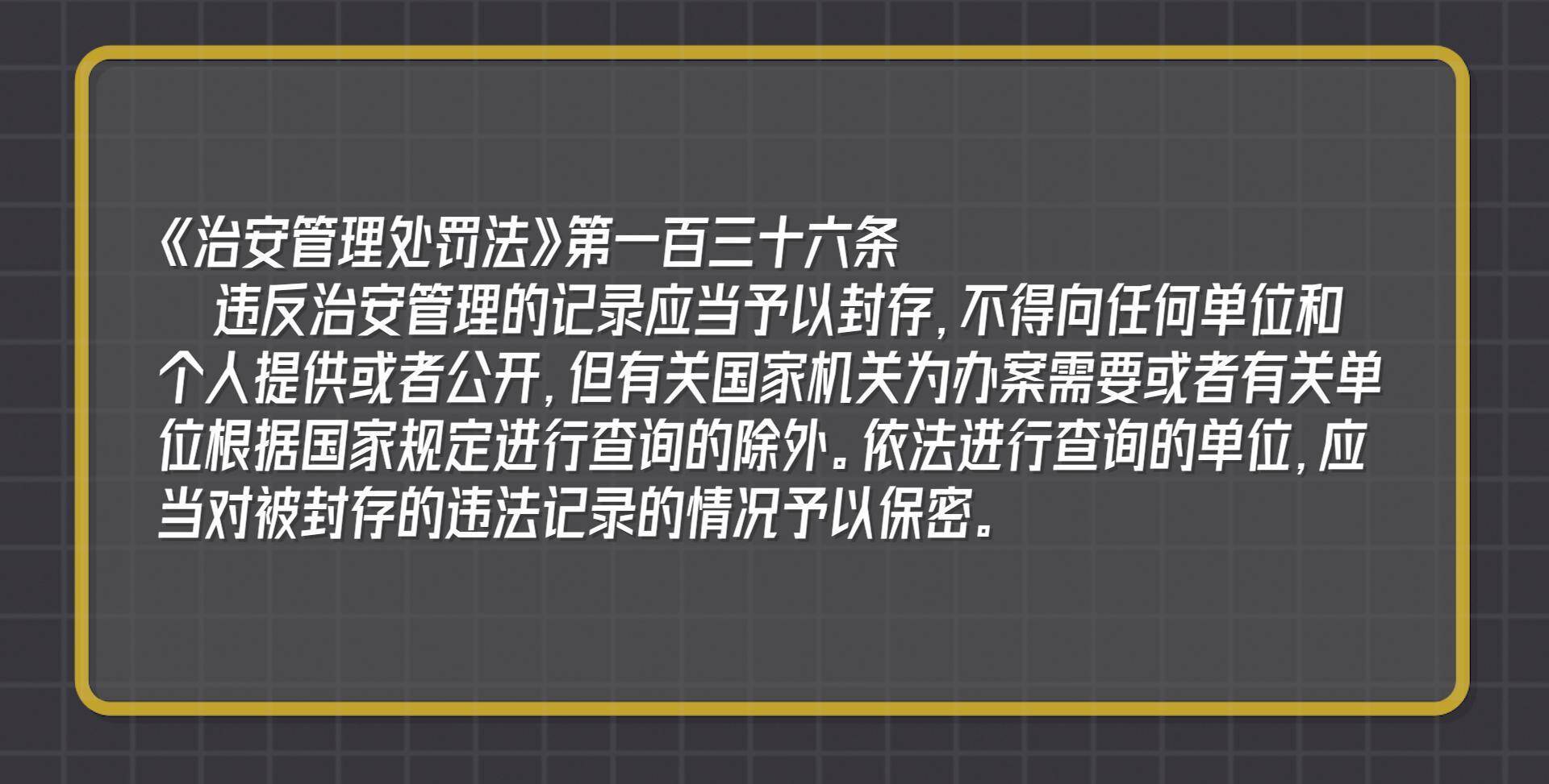 所以可能有些人他看到治安违法记录封存,他没想到有吸毒、嫖娼、赌博什么的,他可能想的就是打架,这个就是大众对法律框架不太熟悉的原因,当然媒体报道可能也不是很到位,所以有这个误解。