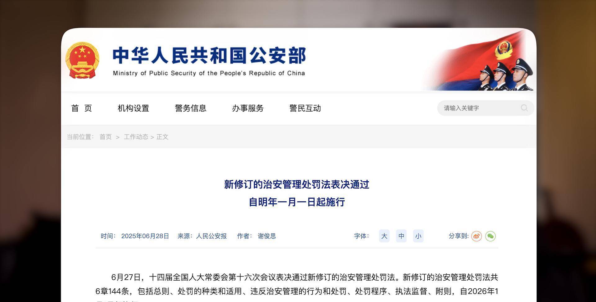 目前新的治安管理处罚法已经由全国人大通过,2026年1月1日开始实施,现在提意见是不是有点晚了?征求意见的时候你们就该说啊。
