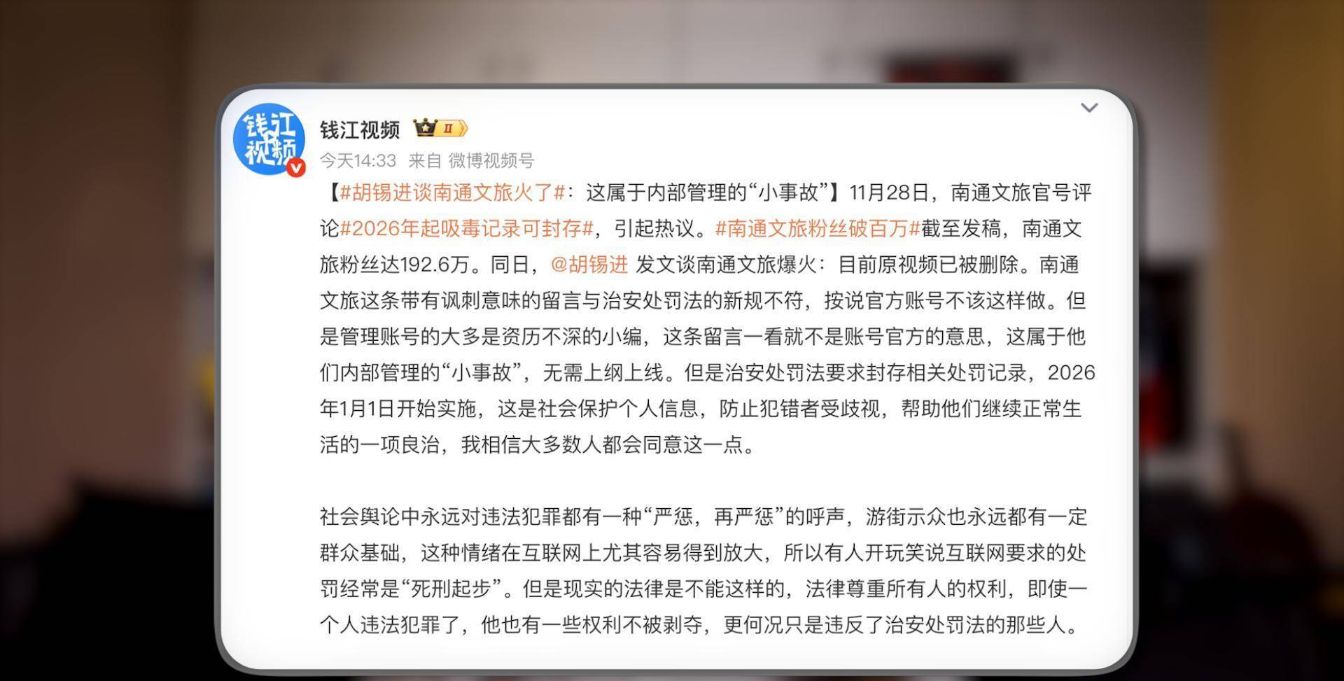 这个事儿我多少有点意外,根据媒体报道,是某地文旅在相关新闻下边评论了一句就引发了舆情。