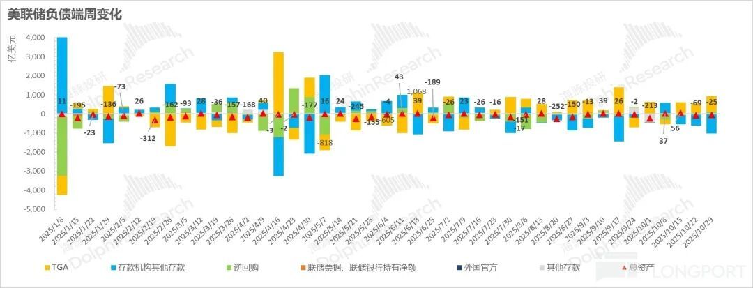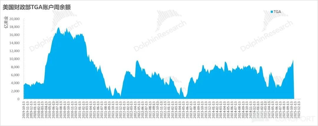这些钱融来了之后,因为政府关门却无法发给实体经济,躺在美联储的账户上,导致财政部实际成为了只进不出、吸食流动性的 “貔貅”。