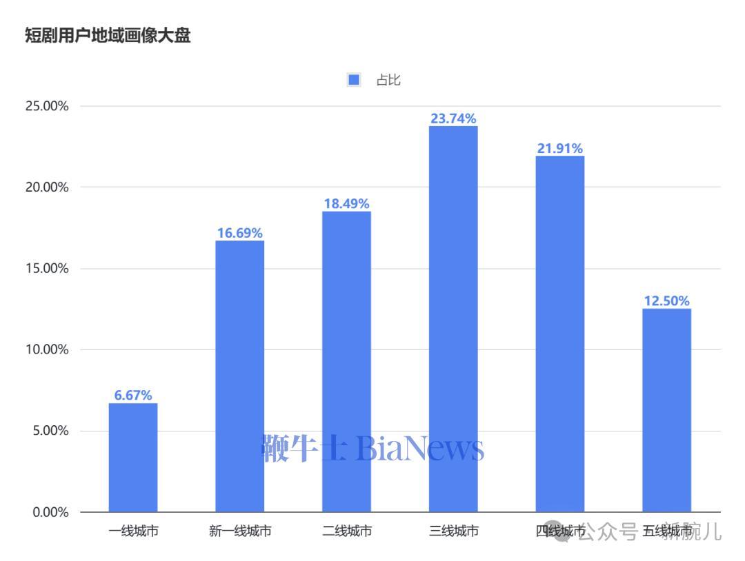 从地域维度来看,三四线城市仍是观众主力,但新一线用户占比增长比较快。一个细节是,一线城市用户出现回落,由7月份的11.29%下降至8月的6.67%。失去的用户均匀的分布在其他地域用户上。证明一线用户对短剧的观看还是暂时性的,他们对内容要求更高,待内容出现同质化或质量下降,一线用户会很快离场。