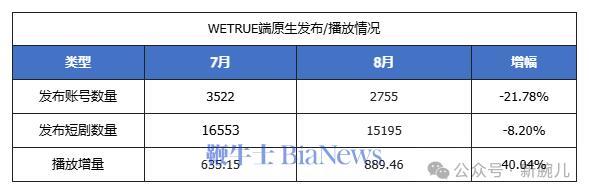 2025年8月WETRUE挖掘到短剧相关的素材: