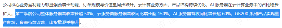 拉动增长的核心动力,就是云计算业务,特别是AI服务器。