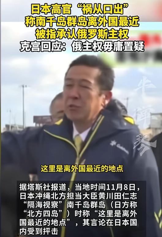 近期日本冲绳北方担当大臣潢川田仁制在隔海视察南千岛群岛时,一句“这里是离外国最近的地点”引发轩然大波。