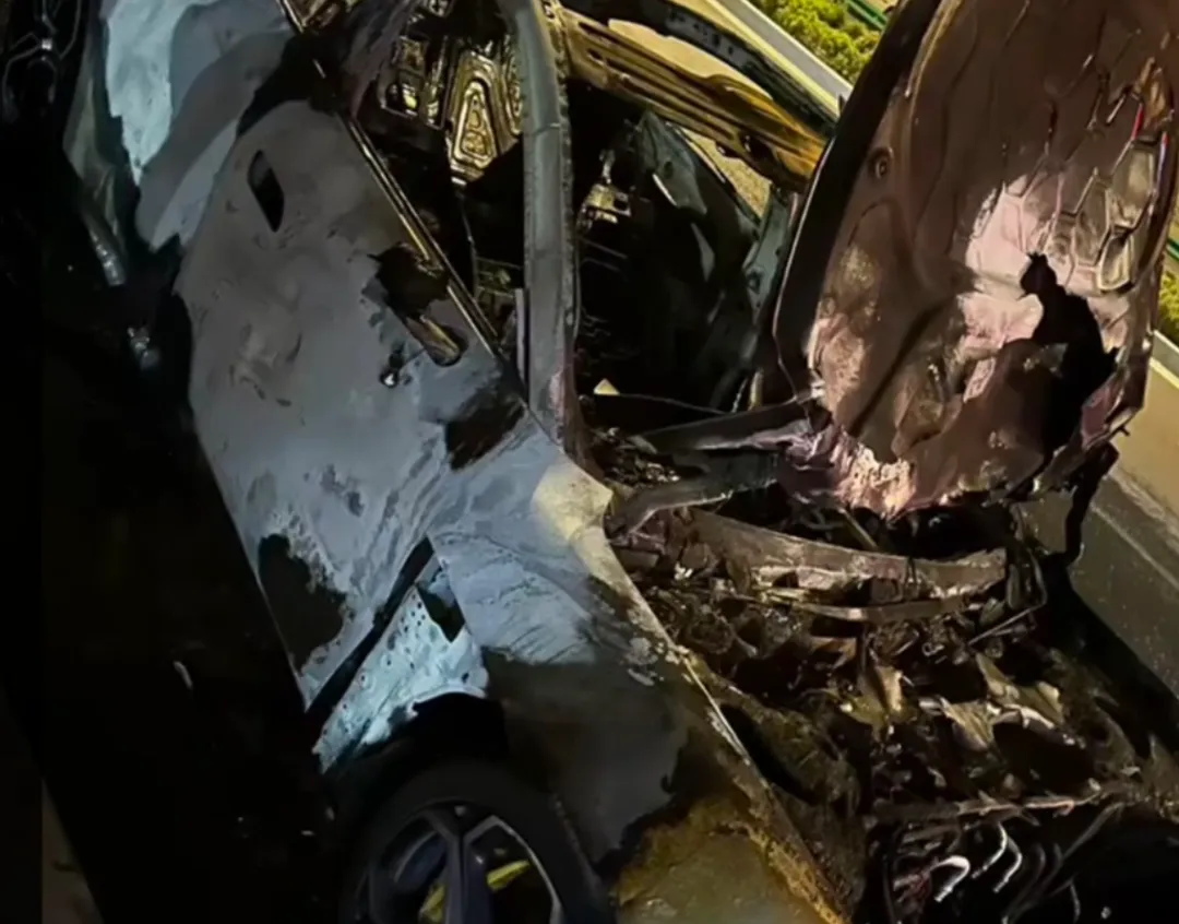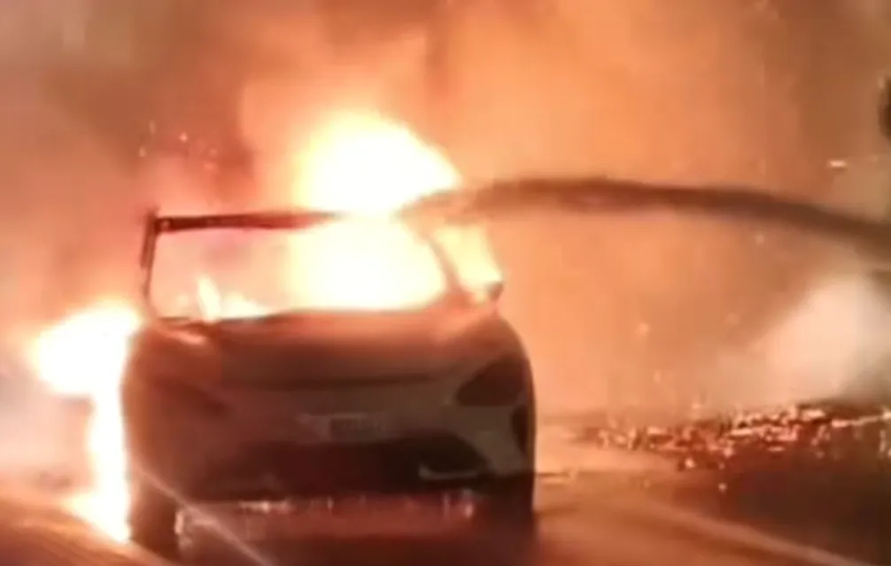 据百姓关注,视频显示火势几乎覆盖了车身,消防队员第一时间赶到现场灭火。火势被控制后,可以看见车身部分严重损毁。