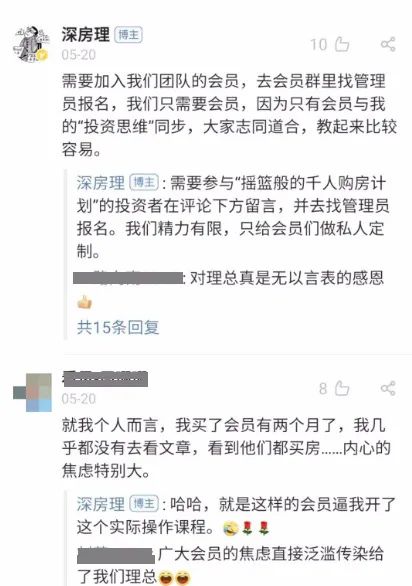 两人虽身在天南地北,但都做了同一件事,加入“深房理”粉丝会员社群,再走完缴纳会员费、咨询费、手续费等完整流程。