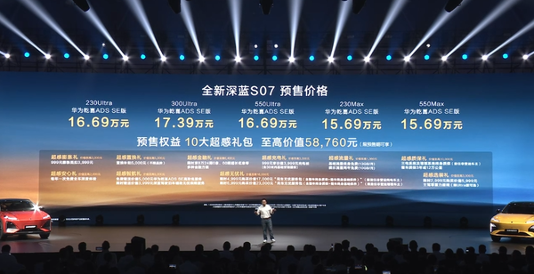 深蓝S07正式发布 全系搭载华为ADS SE 15.69万元起