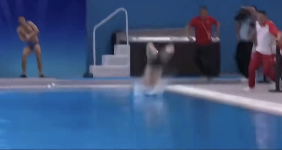 全运会惊险一幕!跳水选手失误横着砸向水面,险摔到泳池边,仅获7分