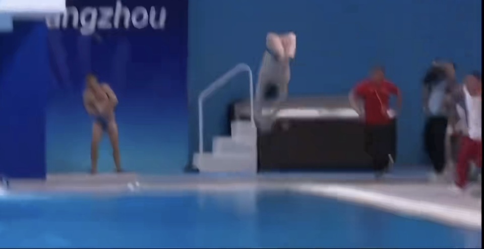 而且,当时苏家杰的位置距离泳池边非常近,一旦砸到泳池边或者外面,将会非常危险,旁边的山东队教练都吓出一身冷汗,赶紧跑了过来。