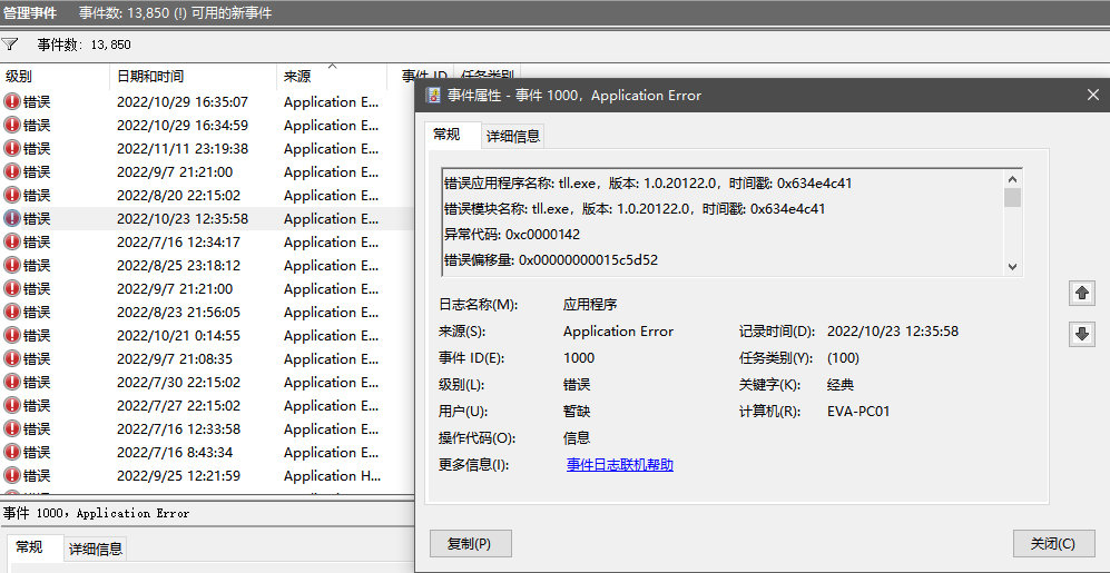 这里我们以《神秘海域:盗贼遗产合集》在win10系统打开闪退的问题为例,在右侧的查找工具栏中输入《神秘海域》的进程名称tll定位到相关错误事件,这里的异常代码:0xc0000142是关键信息。经查找资料可知,引起0xc0000142的通常原因是部分DLL文件未能被系统注册,导致动态库调用错误造成的。这种结果的指导意义不大,为了提高效率,可以选择与问题接近的关键词进行搜索,这里我们用关键词“神秘海域 0xc0000142”进行搜索,最终可知,导致tll.exe在打开时闪退的原因是上下级中文文件夹引起的,放到纯英文目录里就好了。