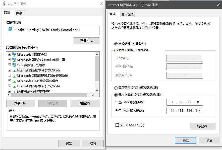 不使用加速器正常登录Steam商店的方法有两种,第一种方法是修改网络的DNS服务器。首先打开windows的设置,然后选择网络和Internet,在状态里面找到“更改适配器选项”。打开以后找到当前系统正在使用的网络连接(如果电脑同时连接了有线网络和WiFi则优先选择有线网络),右击选择属性找到“Internet协议版本4(TCP/IPv4)”并选中,双击或者点击下面的属性按钮,将新窗口下方的“自动获得DNS”更改为自定义,接着将DNS地址修改为Google DNS 8.8.8.8和国内通用的114.114.114.114 DNS,点击确定之后,再重启steam客户端即可。