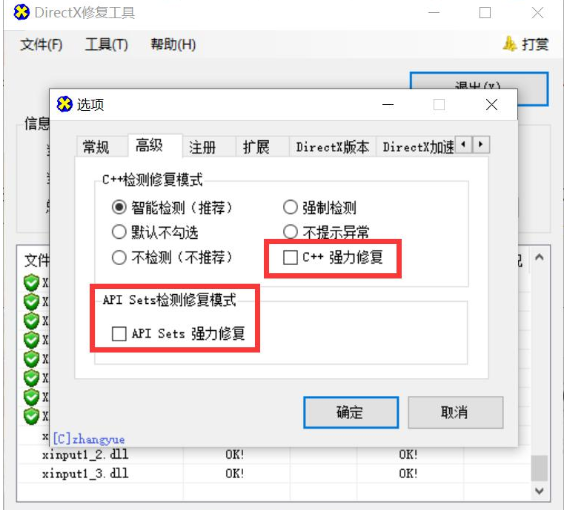 有时候缺少的dll文件不止一个,这种情况再去单个下载就过于麻烦了,这种情况就有必要借助老牌的修复工具DirectX Repair了,DirectX Repair是一款优秀的系统dll和C++运行库检测修复工具,它不仅能够轻松的检测出电脑中缺失的dll文件,还能够对其进行修复。软件的操作设计非常简单,只需要轻轻一点即可完成检测、修复、注册等一系列问题。如果遇到自动修复功能失败时,我们可以在详细错误信息界面查看相应的异常文件,并在该文件上点击右键,进行手动在线修复。或者在工具-选项-高级里选用强力修复模式进行修复。