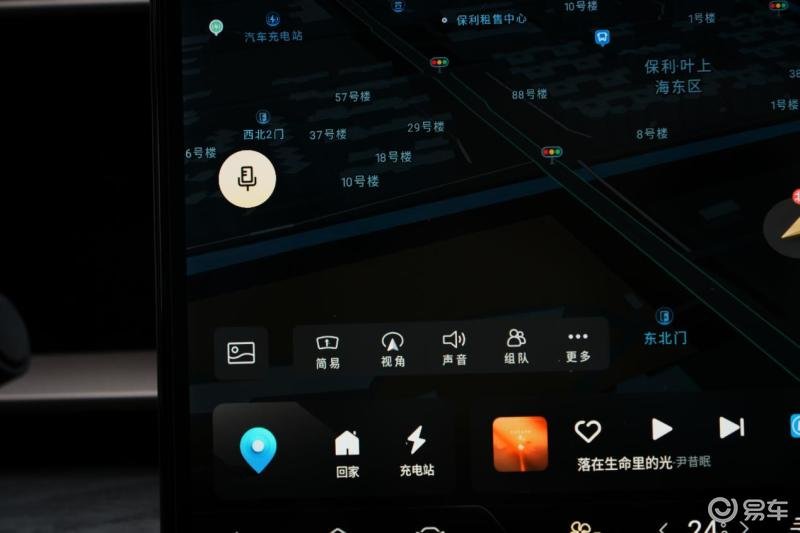 仪表盘则有着常规的地图显示、车辆状态、续航状态显示等,这里的槽点在于,你需要在地图界面找到一个非常隐蔽的图标,才能将地图投影至仪表盘上,直接在方向盘上操作仪表模式切换是没法实现的。