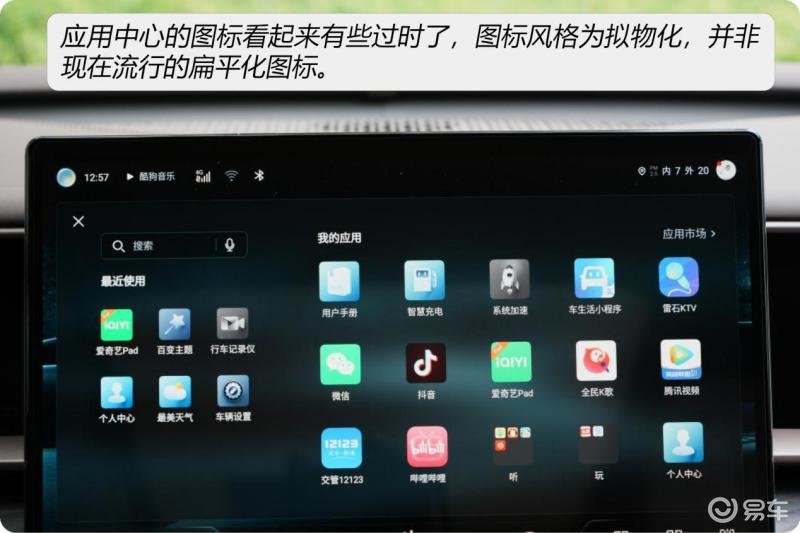 系统自带的音乐软件为酷我音乐和酷狗音乐,市面上用户基数较大的QQ音乐和网易云音乐并没有搭载,不过在第三方应用市场中可以自由下载。而视频软件方面,常用的bilibili、爱奇艺都可自由下载。第三方应用的支持程度很不错,这点一直是比亚迪集团下属车型的优点。