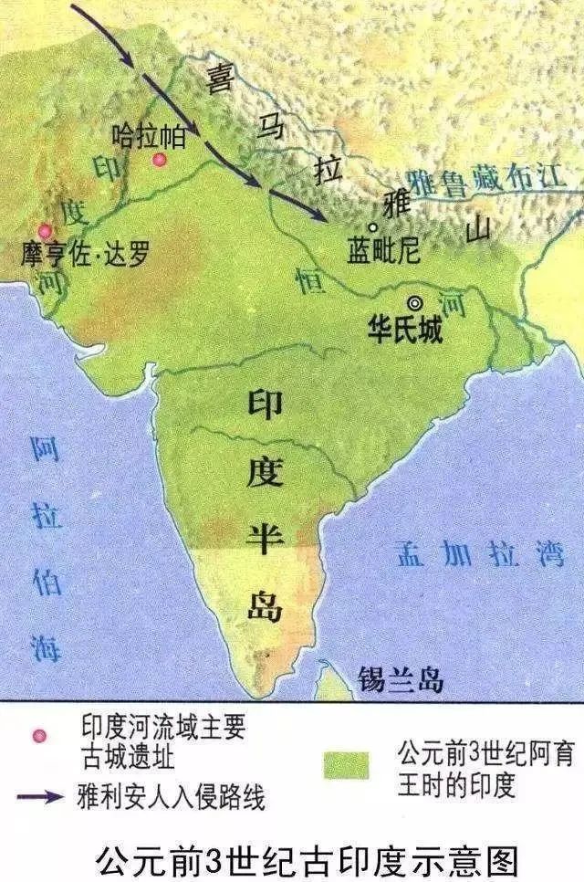 公元前2000年,西亚的雅利安人入侵南亚,印度河文明遭受重大打击,在未来近千年间,南亚政治核心从印度河流域逐渐转移到恒河流域,达罗毗荼人则被迫迁至印度半岛南部。