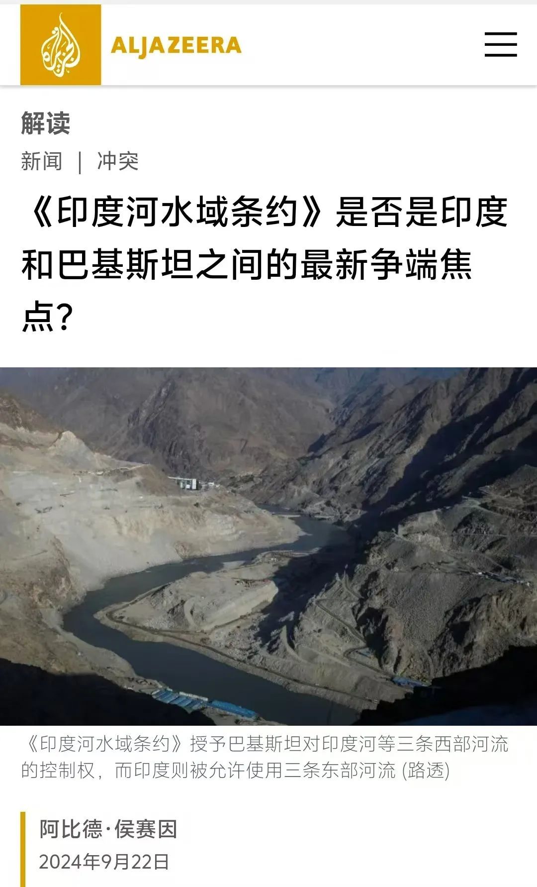 ▲半岛电视台对印度河问题的报道