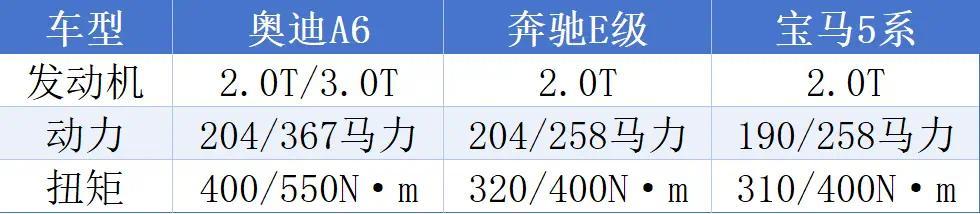 但高功率的奔驰E和宝马5系都是258马力,相较于奥迪的3.0T动力就相差甚远了。