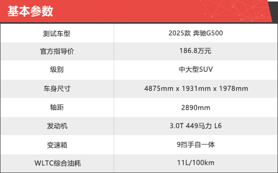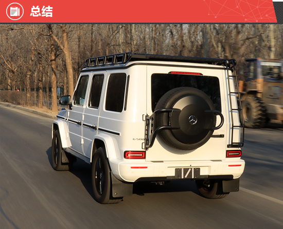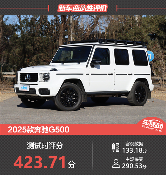 综合以上各项测试结果得出结论,2025款奔驰G500在客观数据和主观感受方面的整体表现达到了专家评审团预期。在客观数据层面,受到硬派SUV造型的影响,车身工艺表现中规中矩,同时漆膜厚度和喷涂均匀性也存在提升空间。在主观感受层面,外观细节的调整使其更具精致感,中控台保留了大量实体按键,并且升级为触控显示屏,保证了操作便利性。不足之处在于,前后摄像头位置过于靠下存在磕碰风险,前排手机存放位置设计不太合理等。综合来看,2025款奔驰G500的商品性表现在测试过的同级别车型中处于中游水平。