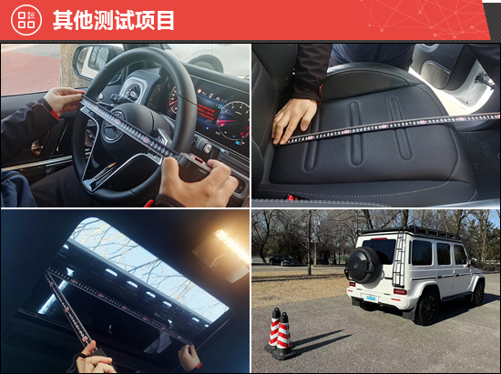 此外,我们还针对驻车雷达、灯光/视野、操控系统、轮胎、天窗、座椅、后备厢进行了测试。经过测试,2025款奔驰G500的方向盘调节范围较大,可以适应不同身高的驾驶员。后备厢开口造型规整,地板平整度也不错,配合侧开门设计,日常拿放物品十分方便。评测车配备飞劲 Azenis FK520系列轮胎,专为高端SUV和运动车型设计,提供了出色的操控性和稳定性,轮胎规格为275/55 R19。相对而言,前驻车雷达最近端和最远端提示距离未达到同级别车型测试均值,有待优化。