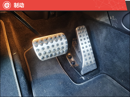 制动踏板脚感偏硬,并且几乎不存在虚位,轻踩下去便能获得充足的制动力。制动踏板行程适中,整体制动力释放十分线性。得益于扎实的底盘结构,紧急制动时车身始终能够保持稳定的姿态,可充分规避出现失控的情况。