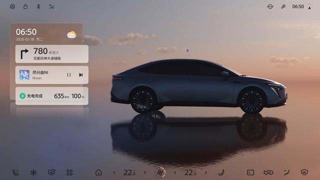 NISSAN OS超级车机系统还拥有丰富的功能,支持绿波车速实时显示、保姆级用电规划的导航功能。