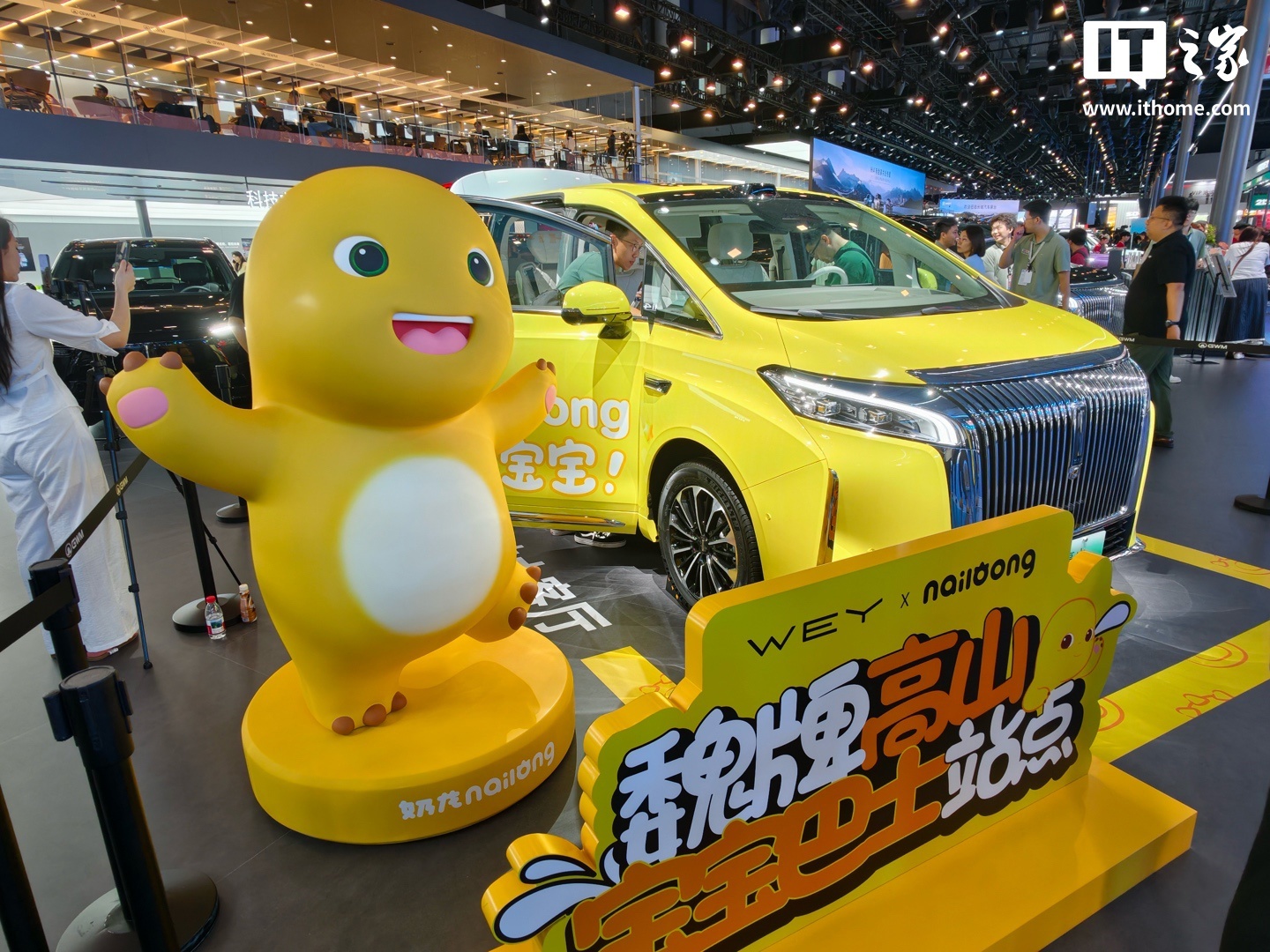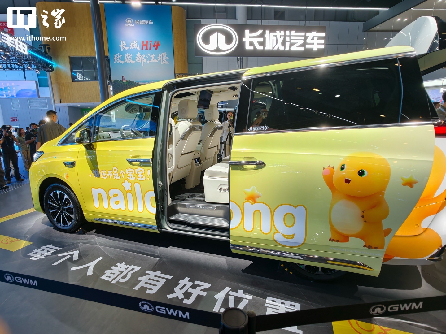 IT之家注意到,该车外观带有“奶龙”联名车衣,强调适合家庭使用,车辆前脸提供密幅布局的直瀑式镀铬饰条,车身匹配带隐藏式滑轨的后排电动门,车尾使用贯穿式灯带和竖向布局的尾灯组。