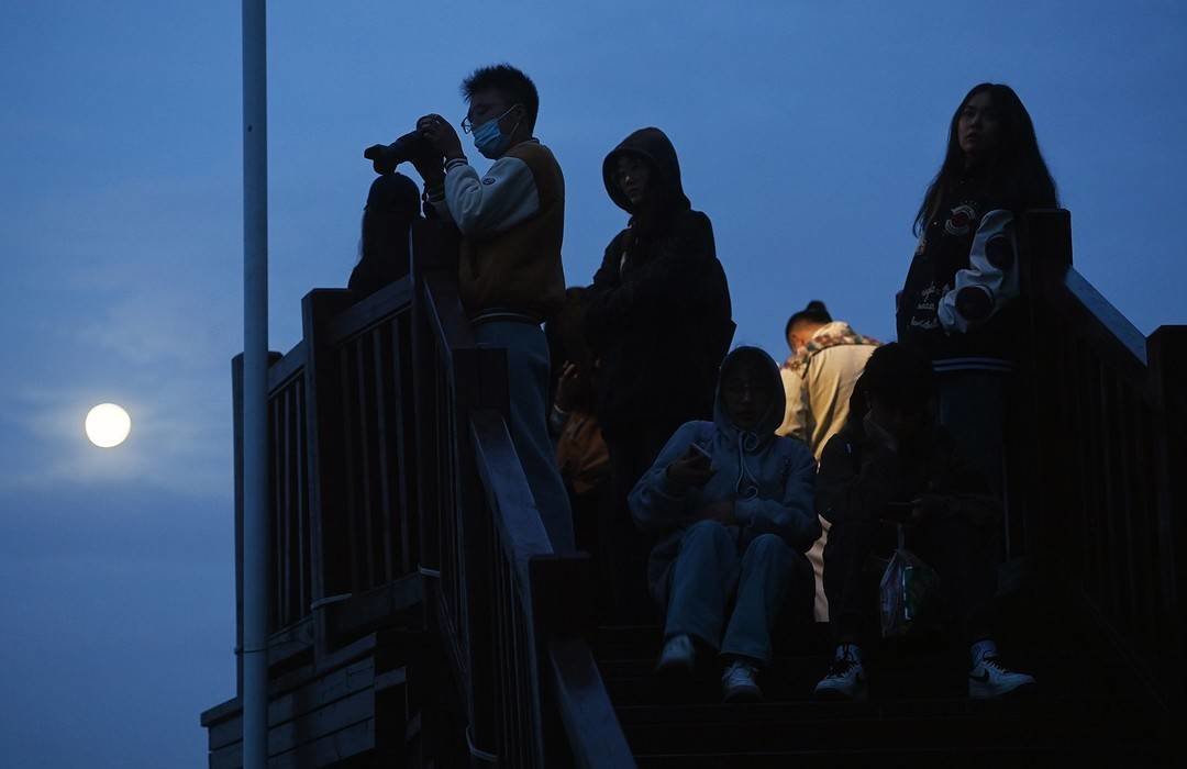 直到我们的车开到山上观景台,我看到黑压压一群大学生,大概十七八个,坐在平台楼梯处等待日出时,我突然为刚才“失敬”的想法感到一丝惭愧,怀着三分好奇三分敬意和一分不解,我开始和他们聊起来。
