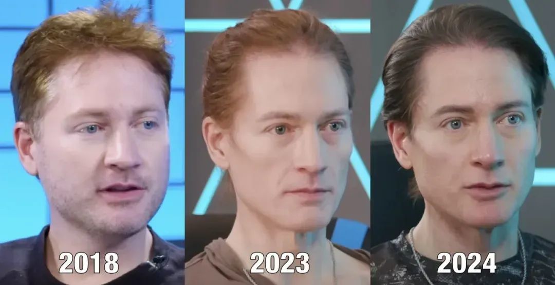 一些网友评论,布莱恩在与普通人合照时,看起来很像AI,标准而精密。也许“相由心生”,生命如此复杂,尽管想要摒弃肉体凡胎的诸多局限,比如疲惫、低落、衰老甚至死亡,但人生恰就体现在这些“不完美”的丰富之中。