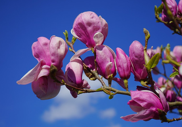 玉兰的花期在早春时节,先花后叶,观赏价值极高。玉兰高贵大方,花色素雅而飘逸,自古就很受人们的喜欢。另外,玉兰花耐寒能力比较好,适应能力强,南北都能种植。