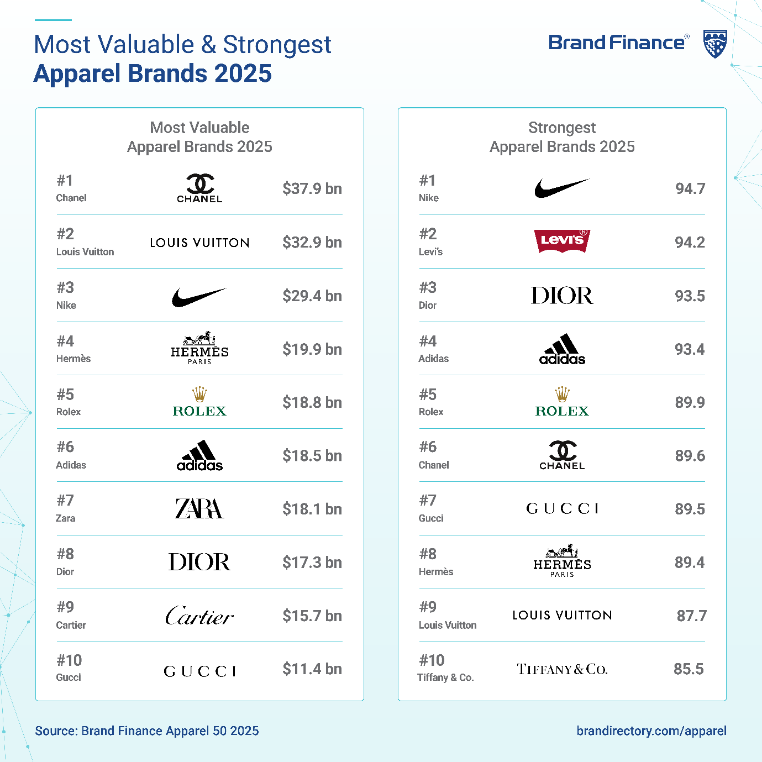 独家首发:《Brand Finance 2025年全球服饰品牌价值榜》出炉