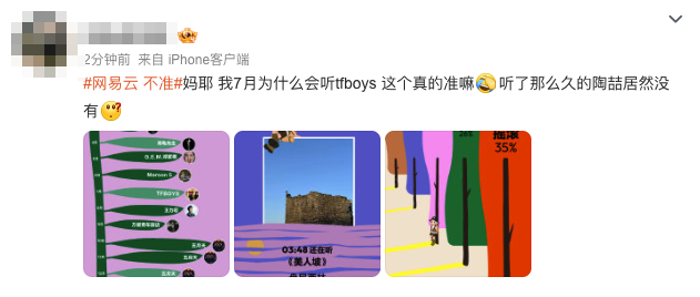 当然啦,抛开那些说“不准”、“敷衍”的网友,机哥这么一番看下来,虽然今年网易云年度报告没有给咱们捣鼓出什么新的花样。