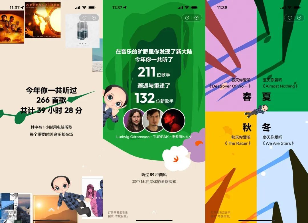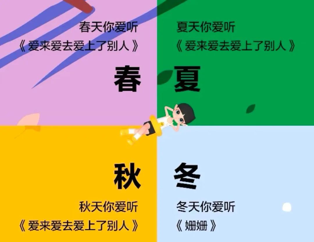 在今年的年度报告里,网易云在保留绝大多数传统项目,诸如听了多少首歌曲、听的总时长,以及春夏秋冬分别最爱听的歌的同时。
