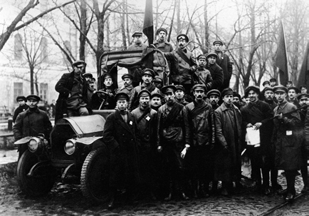 1917年,彼得格勒,苏俄内战时期的红军。十月革命后,红色政权面临着白俄反动力量的反扑和外国军事力量的干涉。当时红军的大部分指战员都是未受过军事训练的革命者。为了改变这种状况,最高统帅部决定成立自己的革命军校