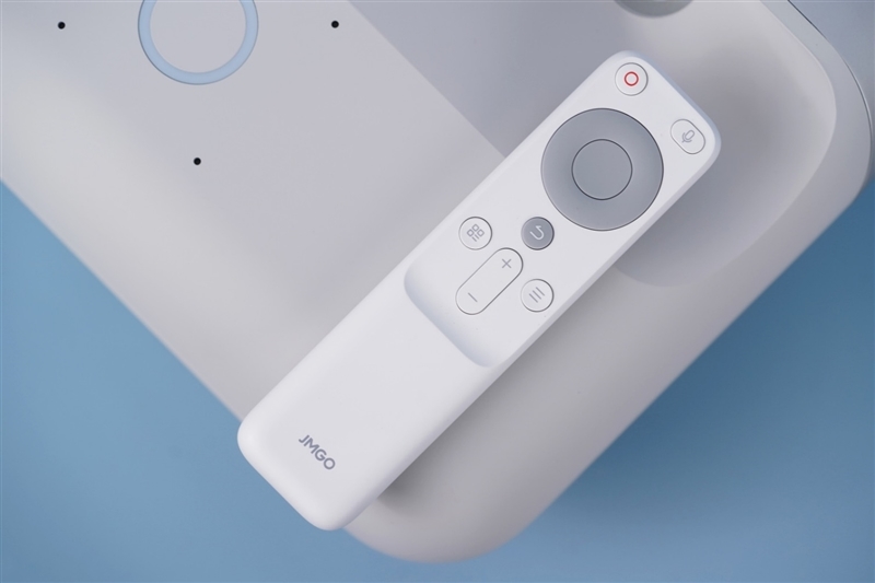 附带的遥控器的风格和坚果O1S保持一致,为相同的灰&白色彩设计,而且功能按键十分简洁,是目前主流的按键布局。遥控器上还有语音输入键,用来呼出语音助手。