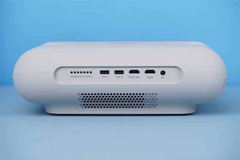 接口部分,坚果O1S配备了2个USB-A、2个HDMI,其中一个还支持eARC回传。