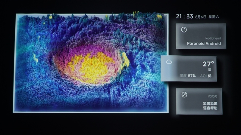 顾名思义,陪伴模式是在用户不使用坚果O1S时,成为用户家庭空间中个性表达、创新交互、陪伴治愈、艺术想象和沉浸体验的影音中心。