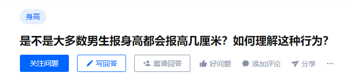 对此,有网友解释道,对于很多男人而言,如果真实身高175cm,那做个发型或穿上鞋就能有178cm,而真正178cm或179cm的男生,也会默契地给自己的身高四舍五入到180cm,同时通过发型和鞋子等找补回来。