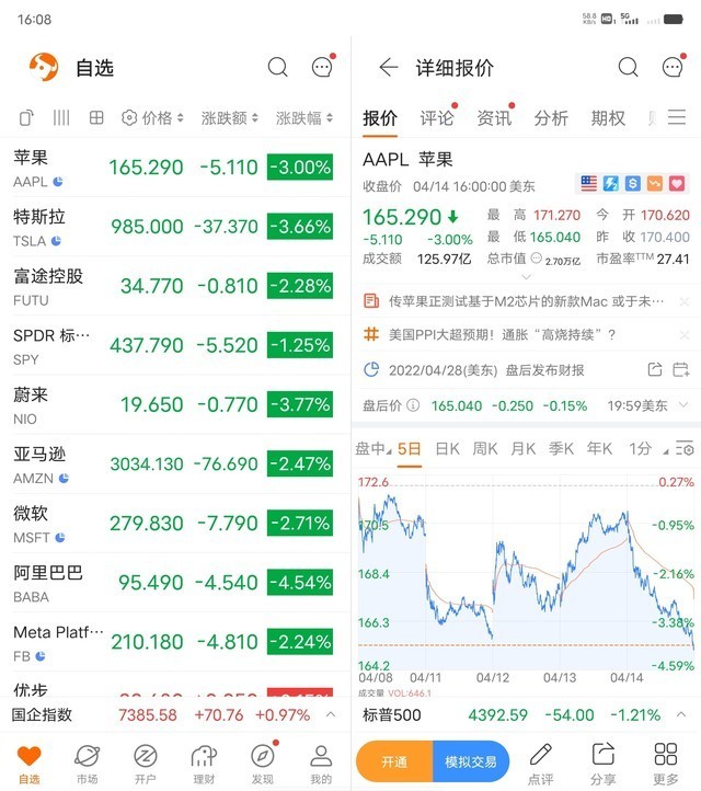 可以看到,在完全展开后的大屏上,最多支持20只股票走势同时显示,需要了解哪只股票的内容,点击即可进入,这也是在非折叠屏设备上难以实现的效果。