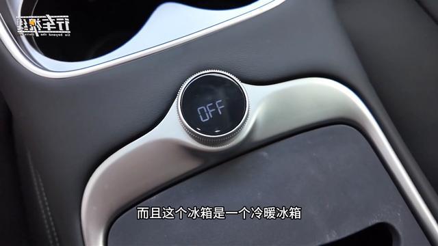 因为这是一个顶配车型,所以它的功能配置还是比较丰富的。像这个手机是有支持50W的快充,而且最重要的是它有一个冰箱,没听错,就是现在比亚迪13万多一点的车就已经配备上了冰箱了。而且这个冰箱是一个冷暖冰箱,温度这一块从-6到6度,加热以后从35到50都是可以调节的。