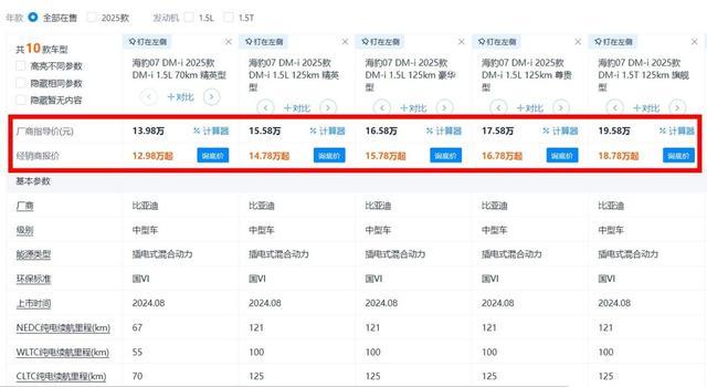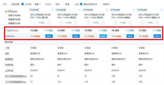 通过上述降价我们不能看出,2025款宋PLUS DM-i(非智驾版)在原价格的基础上下降了1.6万元起;2024款海豹06 DM-i(非智驾版)在原价格基础上下降了1万元起;2025款海豹07 DM-i(非智驾版)在原价格基础上下降了1万元。