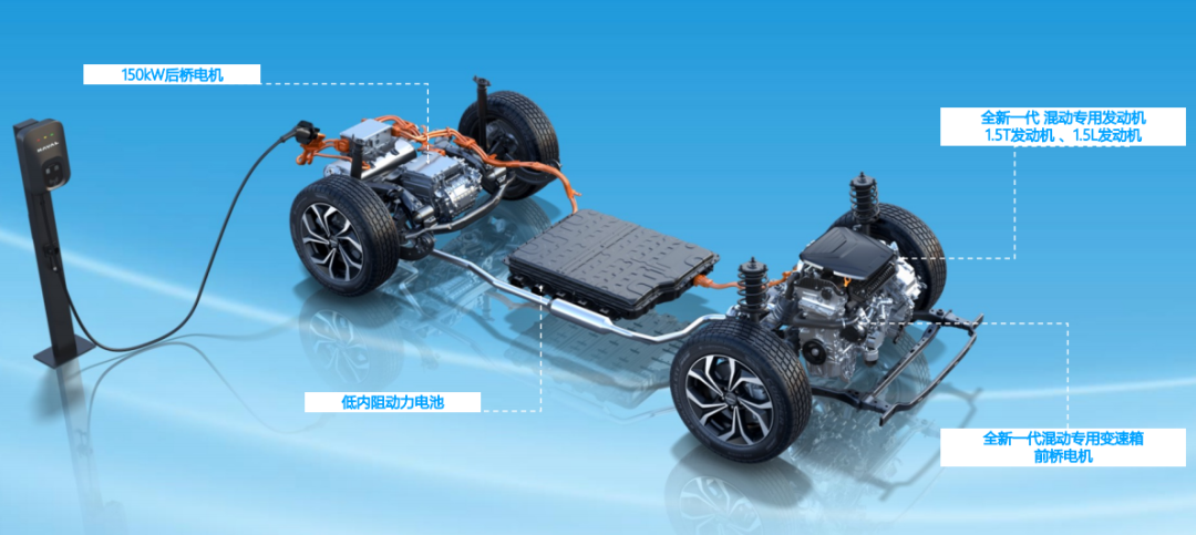 据官方介绍,Hi4架构拥有2套动力总成,最高系统功率340kW, 可覆盖A-C级车型,可完成由1.5L/1.5T两款混动专用发动机,以及前后轴双电机串并联的3擎9模电四驱动态切换,进而实现宣传的“四驱的体验、两驱的价格,四驱的性能、两驱的能耗”。