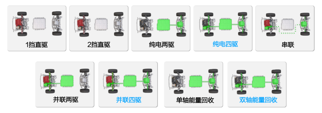 Hi4架构9种动力模式示意图