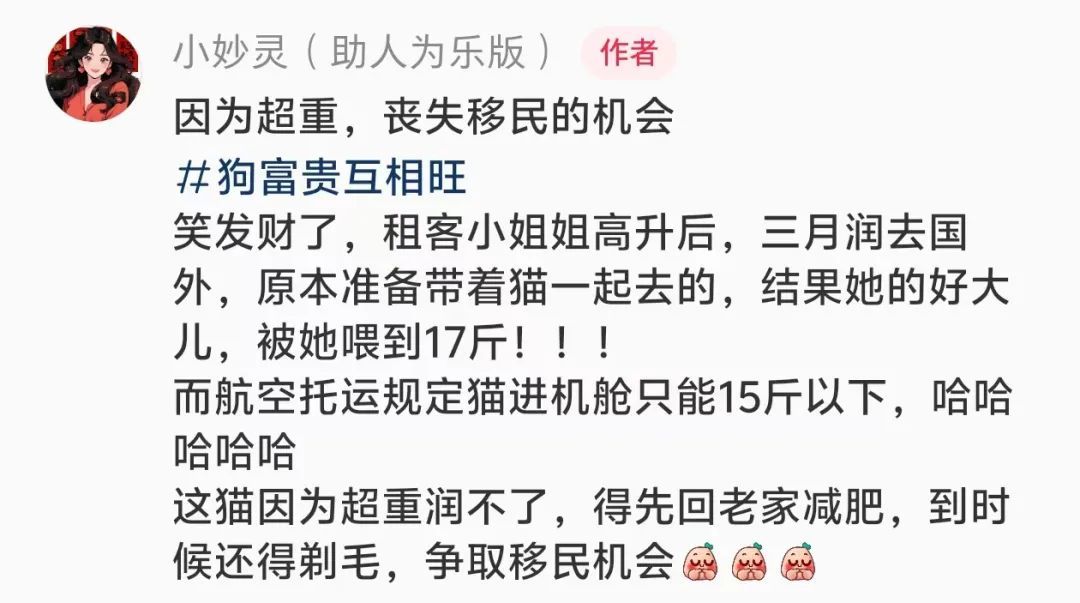 小姐姐想带要带猫咪一起出国,但是猫咪已然被喂成了小猪模样,足足有17斤。