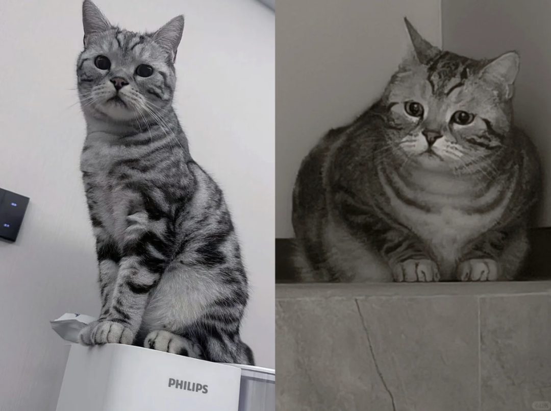 最关键的是,虽然小猫胖了不少,但是瞅瞅这睿智的小眼神儿,再瞧瞧小猫身上的花纹,还是能辨认出就是同一只猫啊!