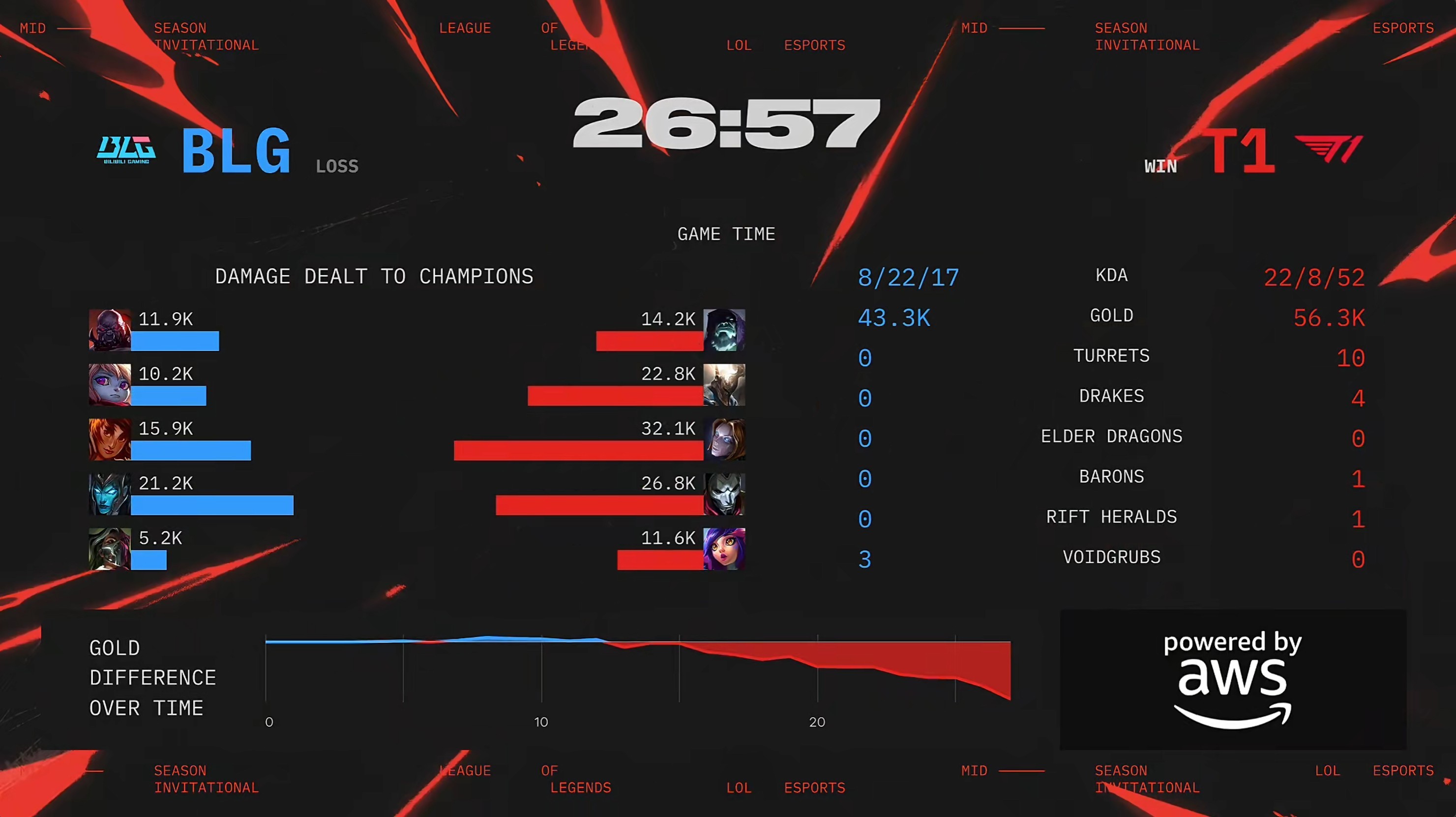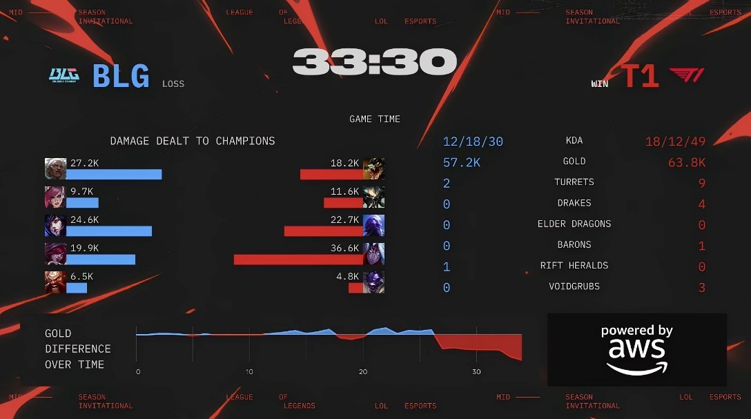 这是T1战队队史首次在MSI中战胜BLG,此前两队三次交手,T1全败。就此,LPL两支战队均掉进败者组,这也意味着LCK两支战队Gen.G与T1将在胜者组决赛中相遇。