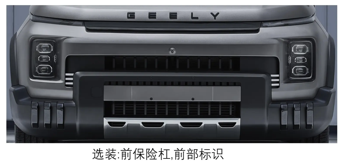 外观方面,工信部显示这一“越野版”车型使用 ICON 玲珑的“發灰”配色,前保险杠方面换用全新硬派风格设计,加入银色下护板以及高亮黑装饰,发动机舱盖前部的吉利图形车标更换为“GEELY”字母标识,尾部拥有两种样式的“小书包”储物装置,尾门两侧的铭牌也变更为黑色。