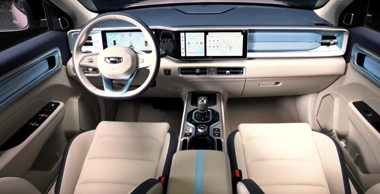 座舱方面,该车提供 10.25 英寸液晶仪表盘 + 12.3 英寸中控屏,内置了吉利银河 OS 车机系统,可通过手机 App 完成远程开启空调等操作,标配 4G 网络、车载 Wi-Fi、华为 HiCar 互联、CN95 空调滤芯、后排出风口、6 扬声器、主驾 6 向座椅电动调节等功能。