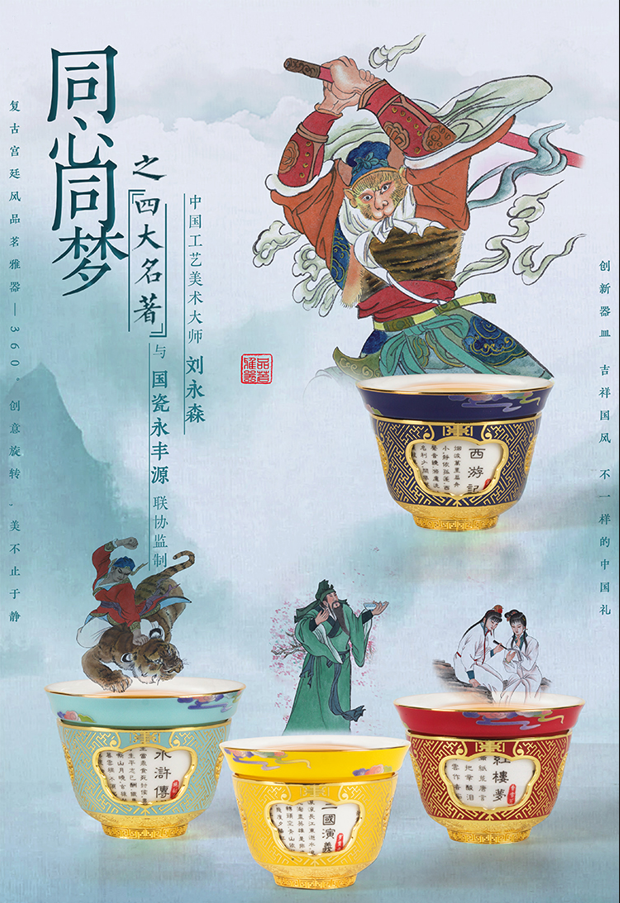 今天给大家带来一套不一样的国风创意瓷礼——同心同梦之四大名著转心杯。
