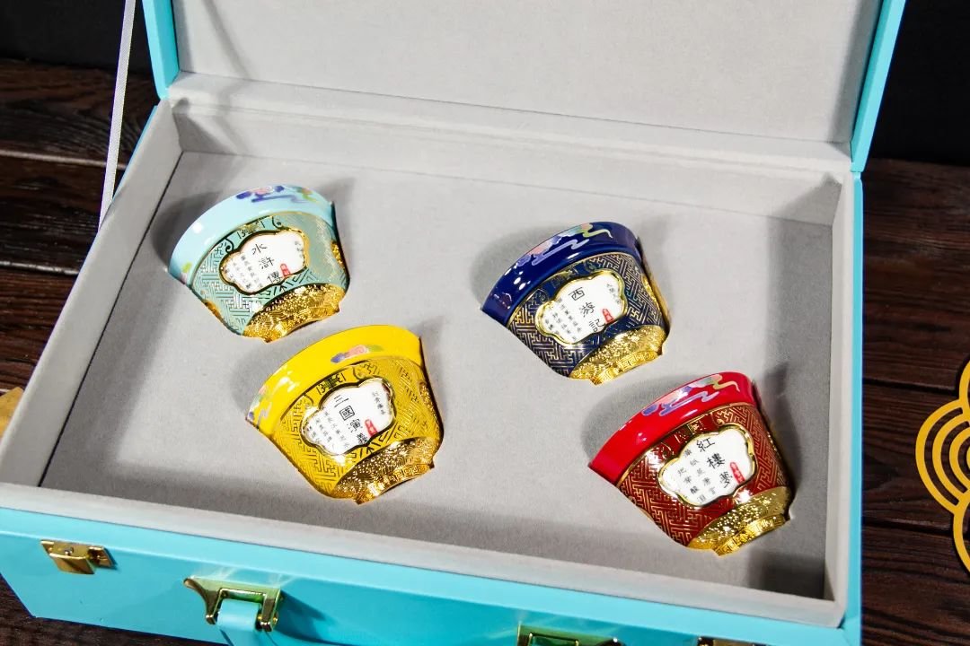 而这套四大名著转心杯,比一般转心瓶更为特别,采用金属珐琅与陶瓷珐琅创意结合工艺,传承非遗景泰蓝工艺,历经多道繁复工序,成就美轮美奂的匠心之作。